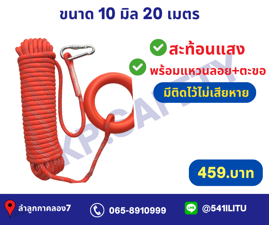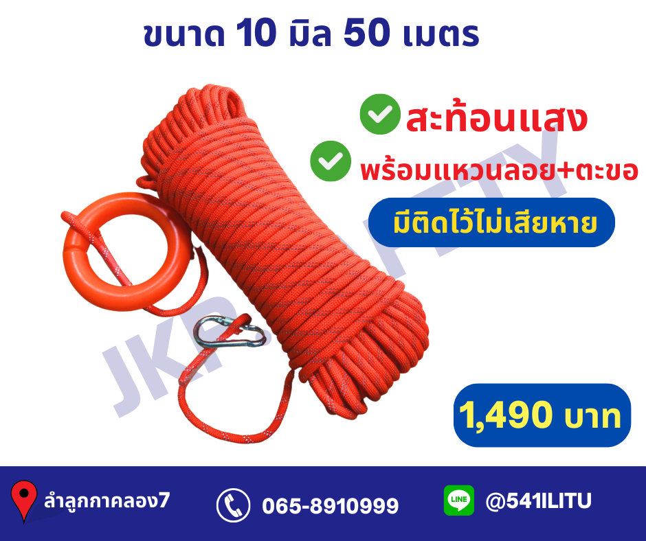 เชือกกู้ภัยลอยน้ำ แบบเรืองแสง ขนาด 10 มิล 20 เมตร ราคา 459 ขนาด 10 มิล 50เมตร ราคา 1,490 บาท